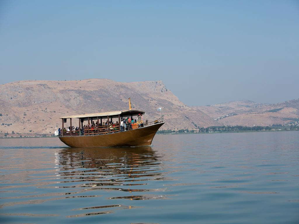 We travel along the shore of the Sea of Galilee where Jesus calmed the sea and walked on water. (Mark 4:35-41, 6:45-52)Across the water we can see the Golan Heights forming a beautiful backdrop as we pass the city of Tiberias which was settled more than 2000 years ago and named after the Roman Emperor Tiberias.