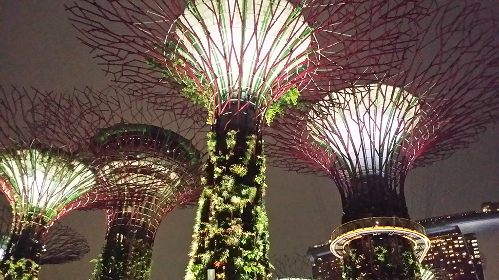 One of the highlights of the evening is a walk down Supertree Grove and watch in awe as the Supertrees come to life with a spectacular light and sound show. These colossal tree-like structures, each with vertical gardens, range in height between 25 and 50 metres.