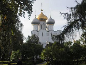 Enter through the decorative red and white baroque transfiguration gate-church and take in the wonderful sights inside. The main and oldest structure within the complex is the imposing six–pillared, five-domed Cathedral of Our Lady of Smolensk. This imposing temple has an astonishingly elaborate interior decorated with numerous frescoes from the 16th century. Of particular note is the octagonal bell tower, a later addition, which is considered by many to be the finest in all of Moscow. For a long time its 72 metres also made it the tallest structure in the city.