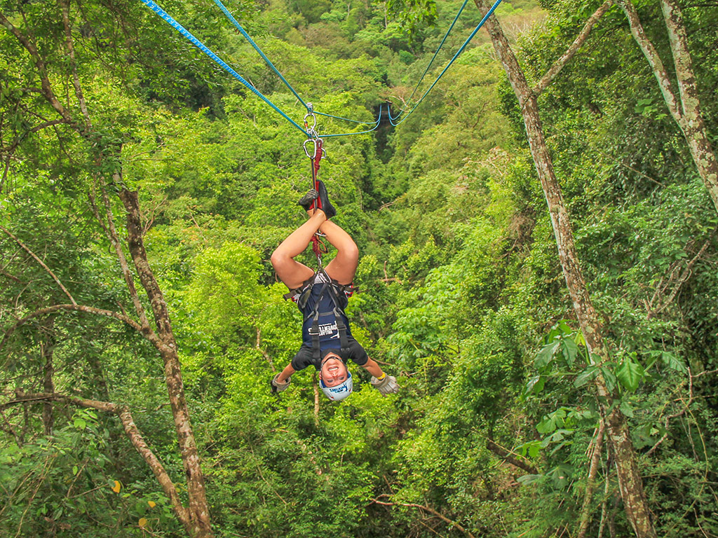 Abseil next to waterfalls, walk into the vastness of the jungle and ride a chain of 9 zip lines through the jungle for an adventure like no other!