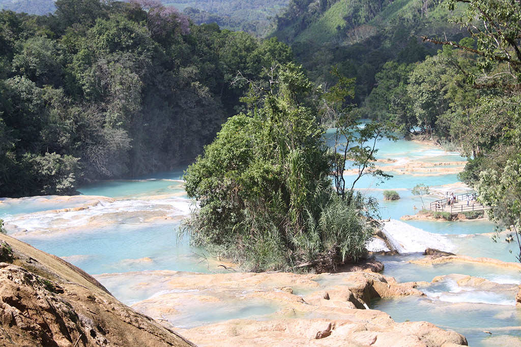 Finally, Agua Azul: One of the most spectacular natural sceneries of México, where you can admire a waterfalls series that forms natural pools created over the Agua Azul River.