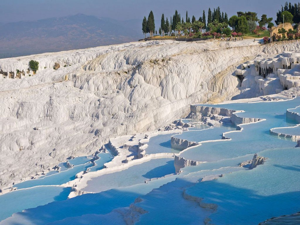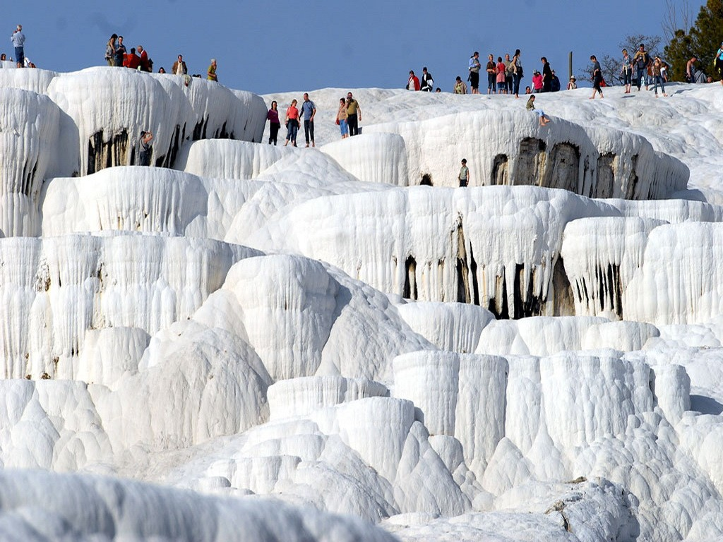 You will visit the antique city of Hierapolis after the lunch. The places to visit are Necropolis, Roman Baths, Domitian Gate, Latrina, Oil Factory, Frontinious Street, Agora, Byzantium Gate, Triton Fountain, Cathedral, Apollon Temple, Plutonium, Theatre and Antique Pool. Last destination of the tour is the white travertine terraces of Pamukkale. You will walk down the hill among the travertine pools. This is the best opportunity to take photos of this unique beauty of nature.