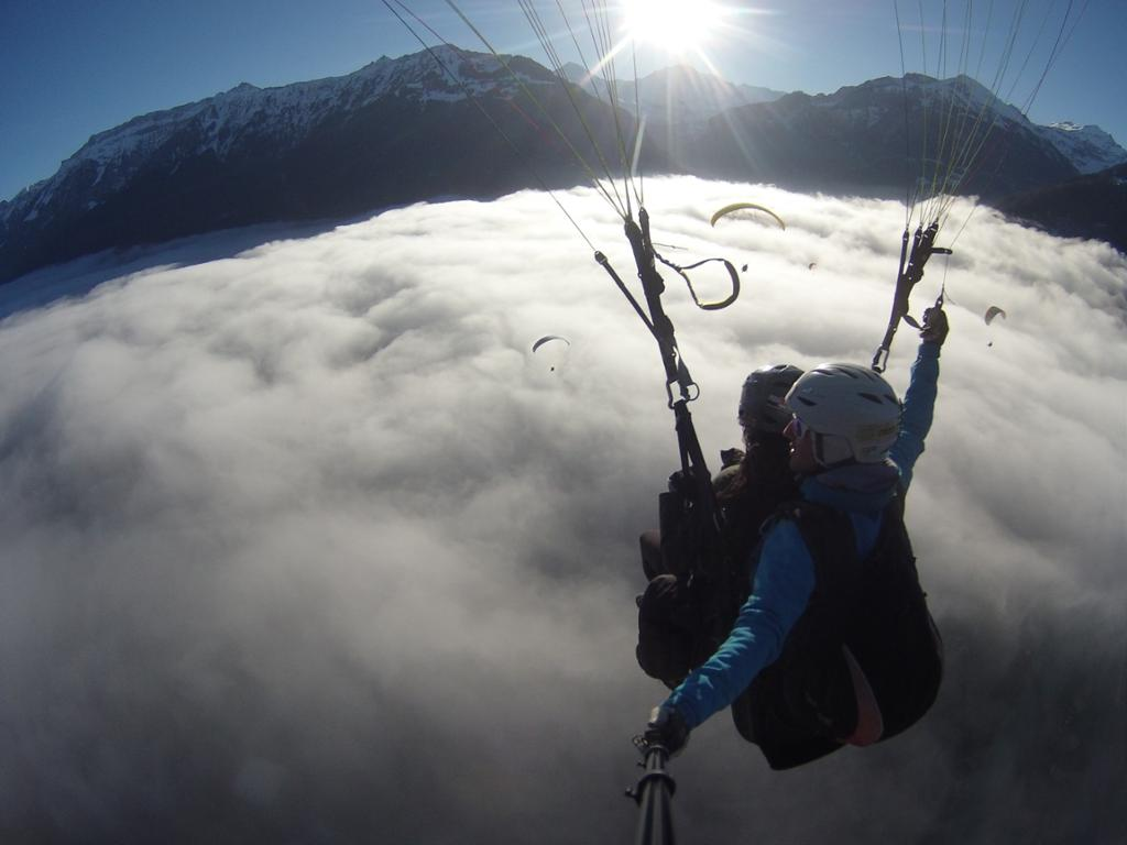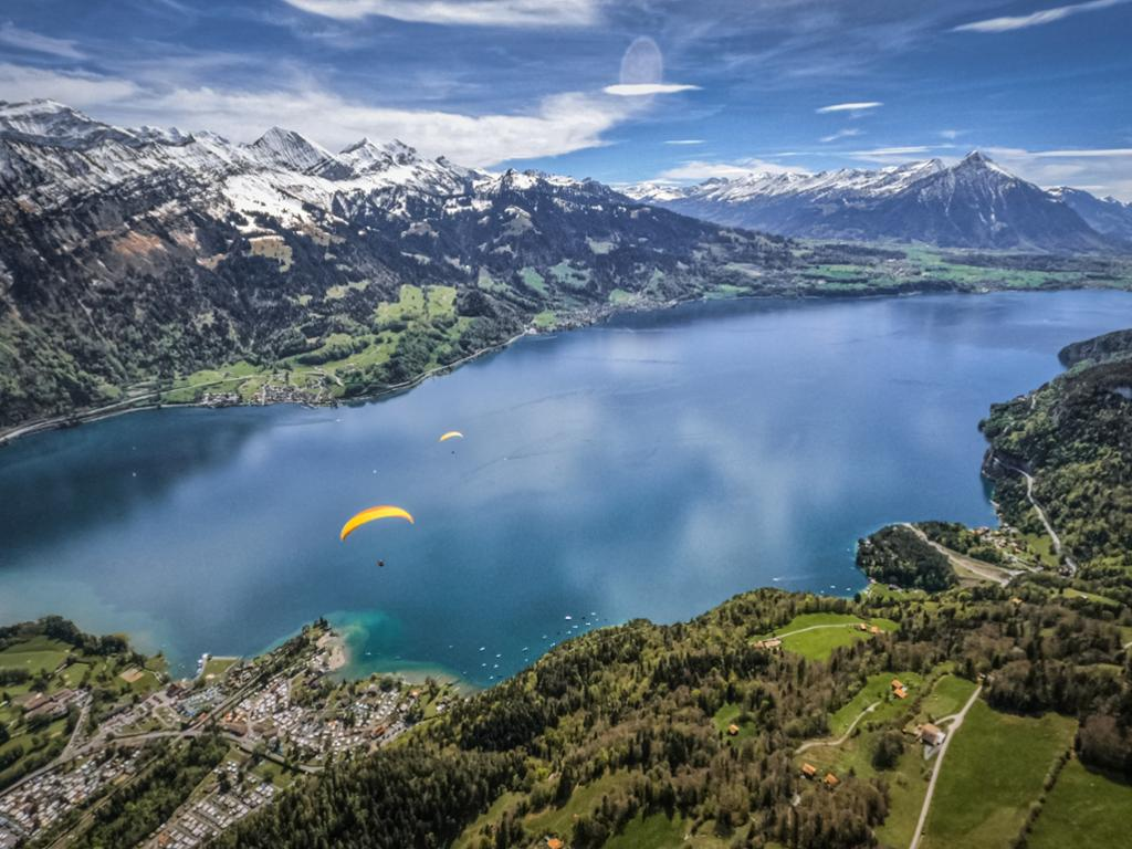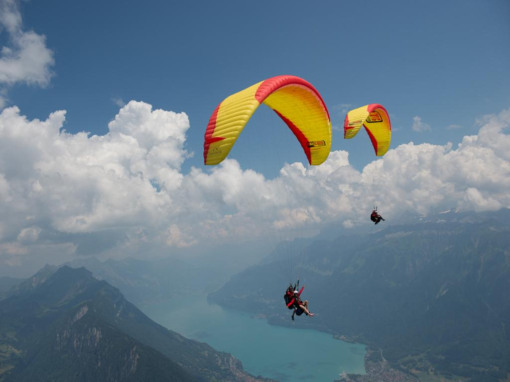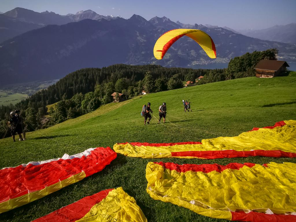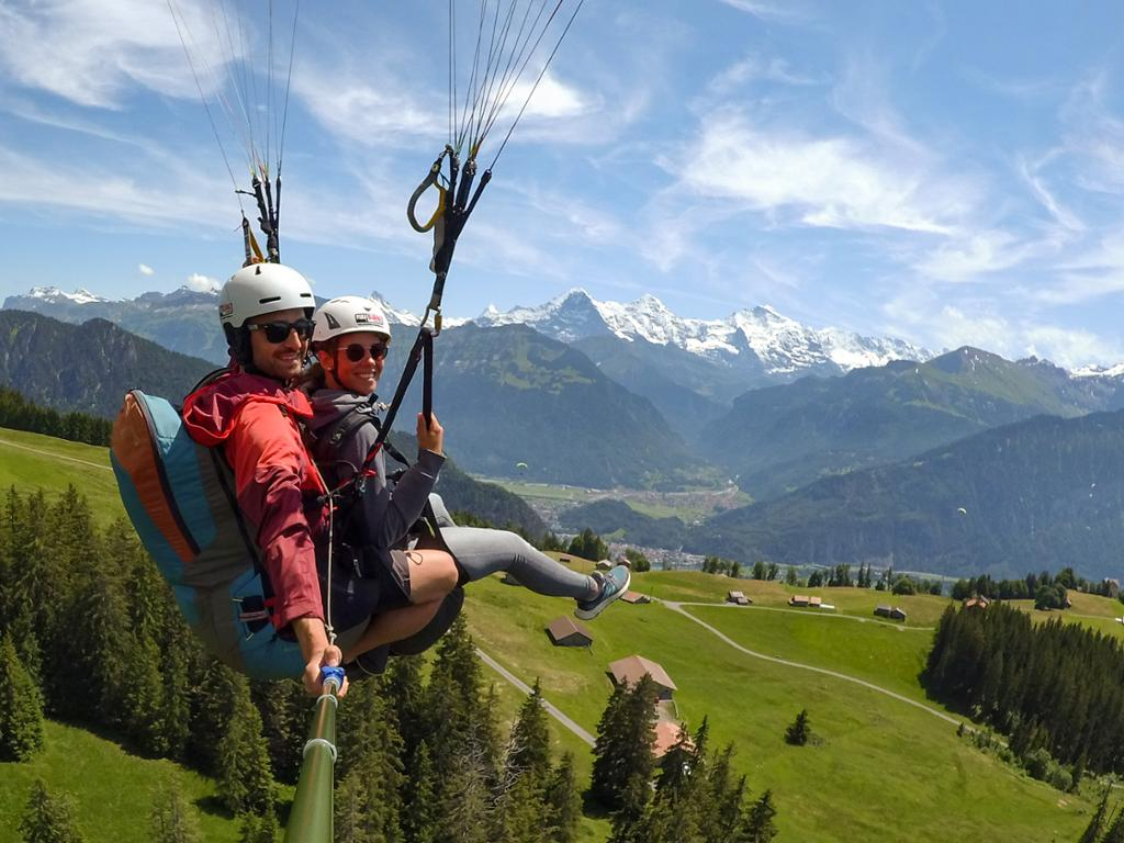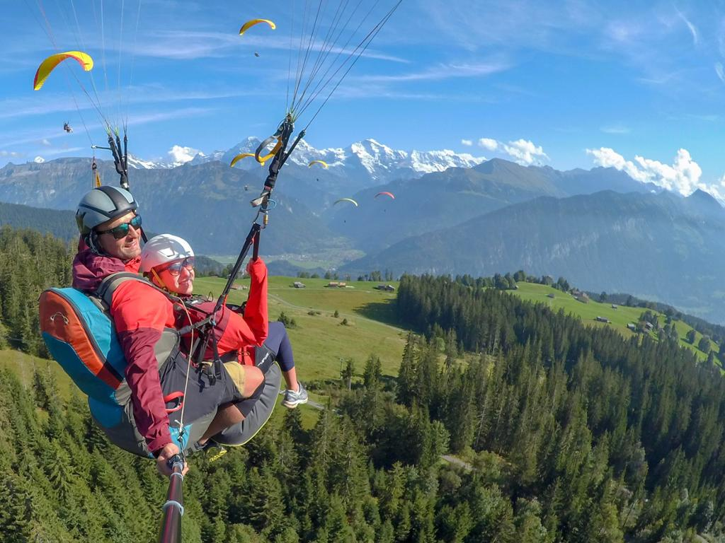 After being dropped off, walk 3 minutes to the take-off site while enjoying the majestic view over the Interlaken region and Jungfrau mountain.Tandem paragliding flight from Beatenberg to Interlaken.