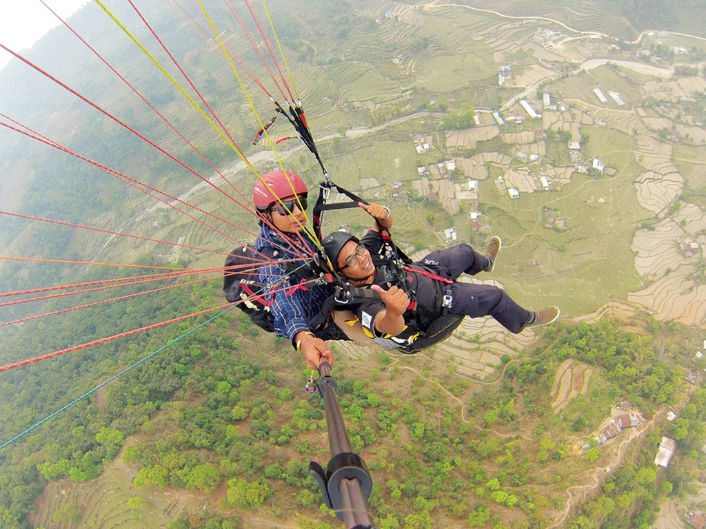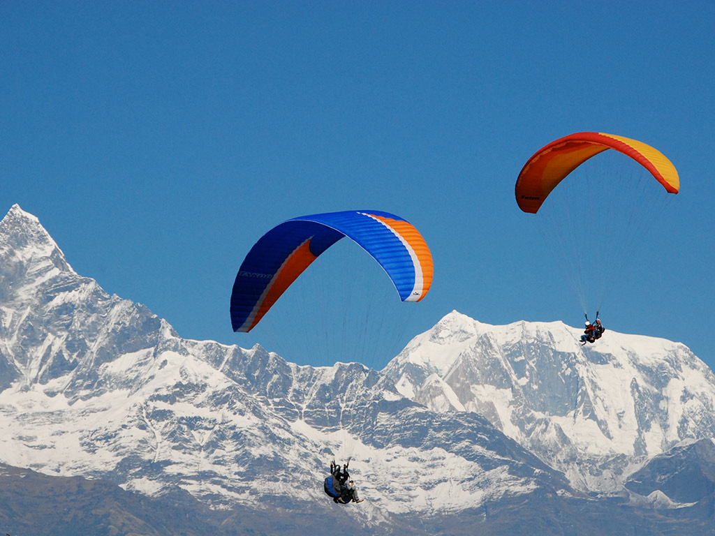 Tandem flights include the services of qualified and experienced pilots. You may even have some hands-on practice at controlling the glider yourself under careful supervision. In the morning after breakfast, drive to Sarankot Paragliding spot to meet the pilot. After an expert briefing you take-off with your pilot on the tandem Paraglider. The 30 to 45-minute flight affords unforgettable views of Annapurna Range, the beautiful Fish Tail, Annapurna South, Himchuli, Annapurna, Lamjung Himal, Manaslu, and the great Dhaulagiri.