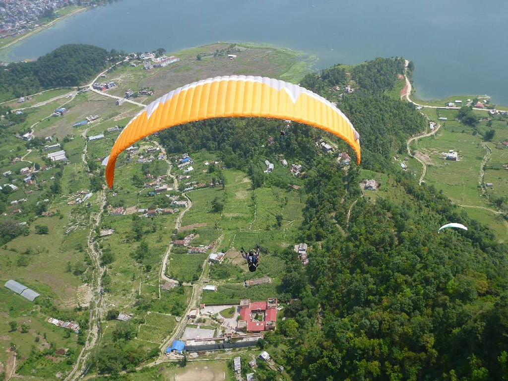 Tandem flights include the services of qualified and experienced pilots. You may even have some hands-on practice at controlling the glider yourself under careful supervision. In the morning after breakfast, drive to Sarankot Paragliding spot to meet the pilot. After an expert briefing you take-off with your pilot on the tandem Paraglider. The 30 to 45-minute flight affords unforgettable views of Annapurna Range, the beautiful Fish Tail, Annapurna South, Himchuli, Annapurna, Lamjung Himal, Manaslu, and the great Dhaulagiri.