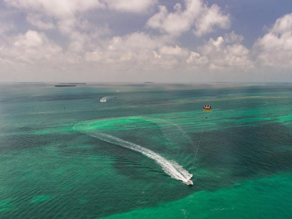 Get taken a mile offshore, out past Sunset Key. You will be sailing through the sky. Be amazed at the quiet stillness while you float 300 feet in the blue sky. On a clear day, you can see for 12 miles. Scan the crystal clear waters for the abundant sea life below including dolphins, turtles, fish and rays.