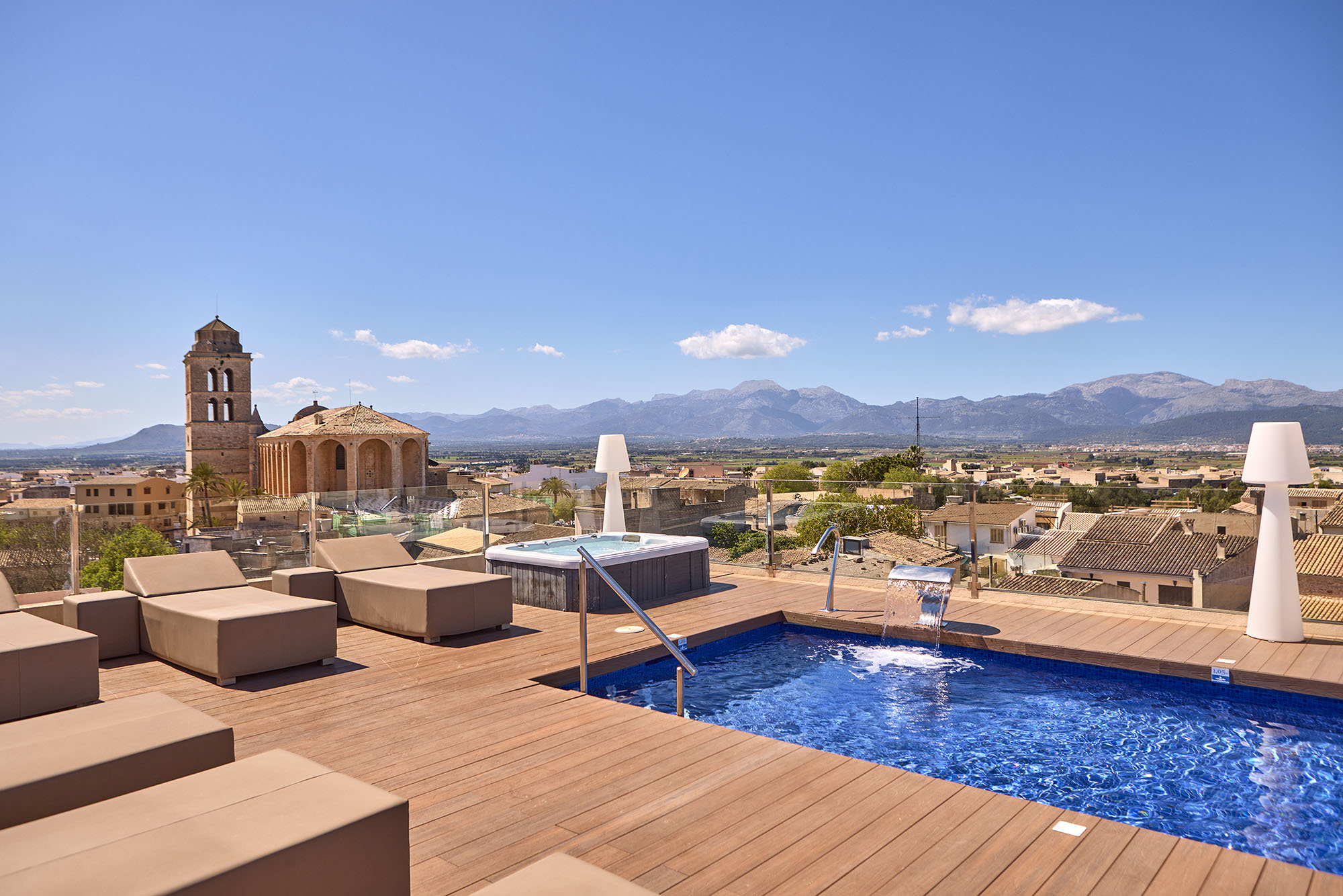 The hotel features luxurious rooms that blend modern comforts with rustic charm, beautiful rooftop pool offering breath-taking views of the surrounding landscapes. Indulge in a gourmet dining experience at the rooftop terrace, where the flavours of Mallorca are reimagined with a contemporary twist.