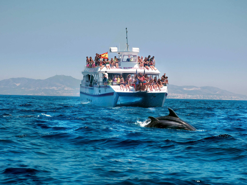 Watch as the breathtaking landscape slowly passes us by, revealing remarkable views of the Torremolinos coast. Breathe in the sea air and let the mist spray onto your face, as we leisurely sail over the waves. Look out for different types of dolphins including the Common, Striped and Bottlenose. The Strait of Gibraltar is ideal for these beautiful species with the mixture of the dense Mediterranean along with the lighter water of the Atlantic Ocean triggers the food chain and makes a lovely home for our fishy friends.