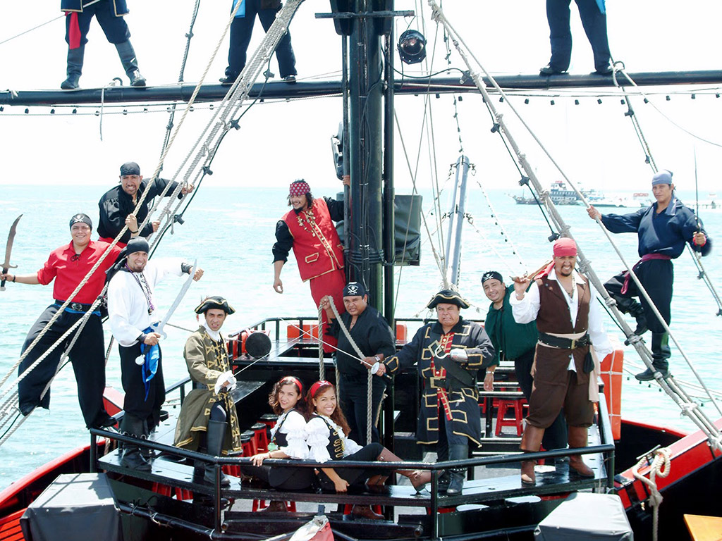 And all this excitement you’re bound to be feeling hungry so it’s time to sit down at Captain Hook’ s table for a banquet where you can feast on delicate meats or the tails of the choicest Caribbean lobster as well as a buffet of salads, steamed vegetables, pirate rice, baked potatoes, grilled chicken and dessert. As well as unlimited Mexican drinks throughout the voyage.