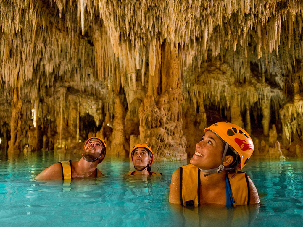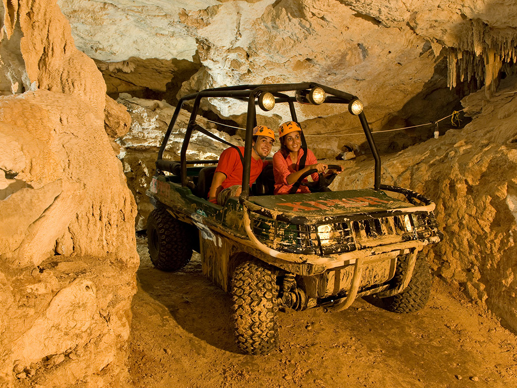 Whizz along variety of ziplines, ranging from 8 to 45 metres in height. Embark on a dreamlike journey through crystal-clear cenotes featuring stunning suspension bridges. Feel the power aboard an all-terrain amphibious vehicle as you drive through spectacular jungle trails and awe-inspiring caves while marvelling at the ancient rock formations. Paddle on a highly manoeuvrable raft to explore fascinating grottoes and round it all off with a swim along a river amid stalactites and stalagmites in a bewitching underground world.