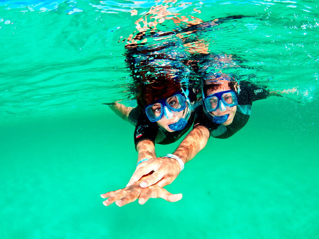 Dive into the waters of Xel-Há, the world's most beautiful natural aquarium and snorkel next to a variety of plants and hundreds of fish in the warm Caribbean waters from one of the five scuba diving modules situated at different points around the park.