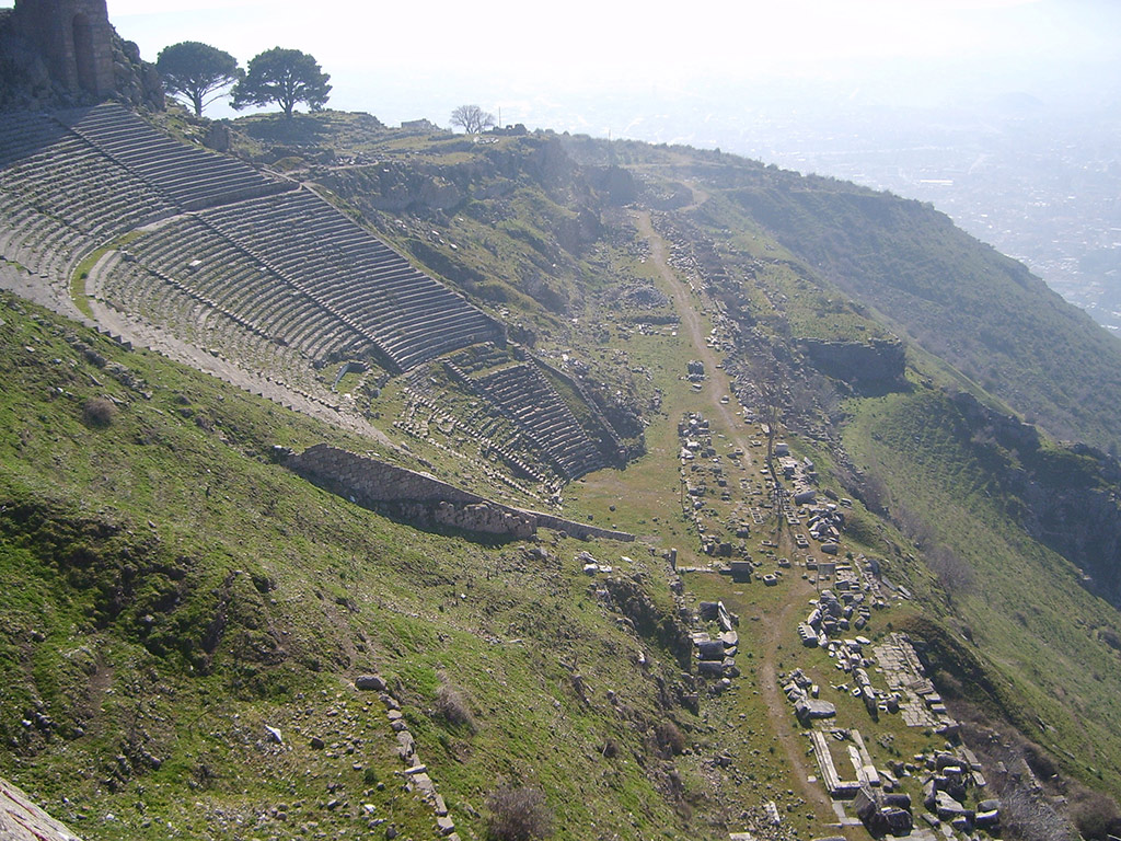 After lunch, we’ll visit the Acropolis, some 3km away. It occupies a vast site overlooking the valley of the river the ancients name Caicus. You will see the remains of temples devoted to Athena, Trajan, Zeus and Dionysus are visible. So, too, the Gymnasium of Youth, the Odeon, the Agora, the Great Theatre, the Roman baths and the Library, considered one of the greatest in the ancient world and, legend has it, was pillaged so Mark Antony could give the books to Cleopatra as a wedding present.
