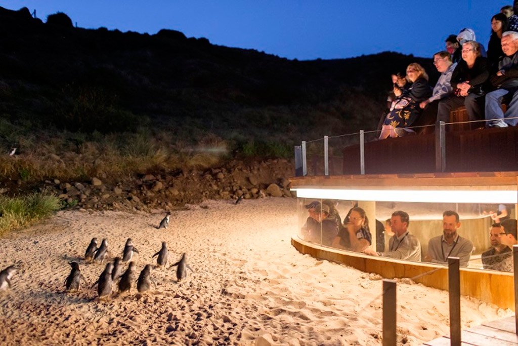 Experience a day unlike any other as you take a walk on the wild side. Make new friends at the Moonlit Sanctuary Wildlife Conservation Park and take a walk along the Nobbies boardwalk and enjoy spectacular views along Phillip Island’s rugged south coast before watching the nightly penguin parade at Summerland Beach. Experience a day unlike any other as you take a walk on the wild side. Make new friends at the Moonlit Sanctuary Wildlife Conservation Park and take a walk along the Nobbies boardwalk and enjoy spectacular views along Phillip Island’s rugged south coast before watching the nightly penguin parade at Summerland Beach. Highlights- Come face-to-face with some of Australia's most lovable animals - Admire the rugged coastline from the boardwalk at Nobbies Viewpoint - Watch the world-famous penguin parade at Summerland Beach Join your small group tour and get up close and personal with the friendly residents of Moonlit Sanctuary Wildlife Conservation Park, where you learn about the conservation of these loveable native animals. The eco certified sanctuary also showcases some lesser-known but equally adorable endangered species including the Southern Bettong, Eastern Quolls, and rare Fluffy Gliders.