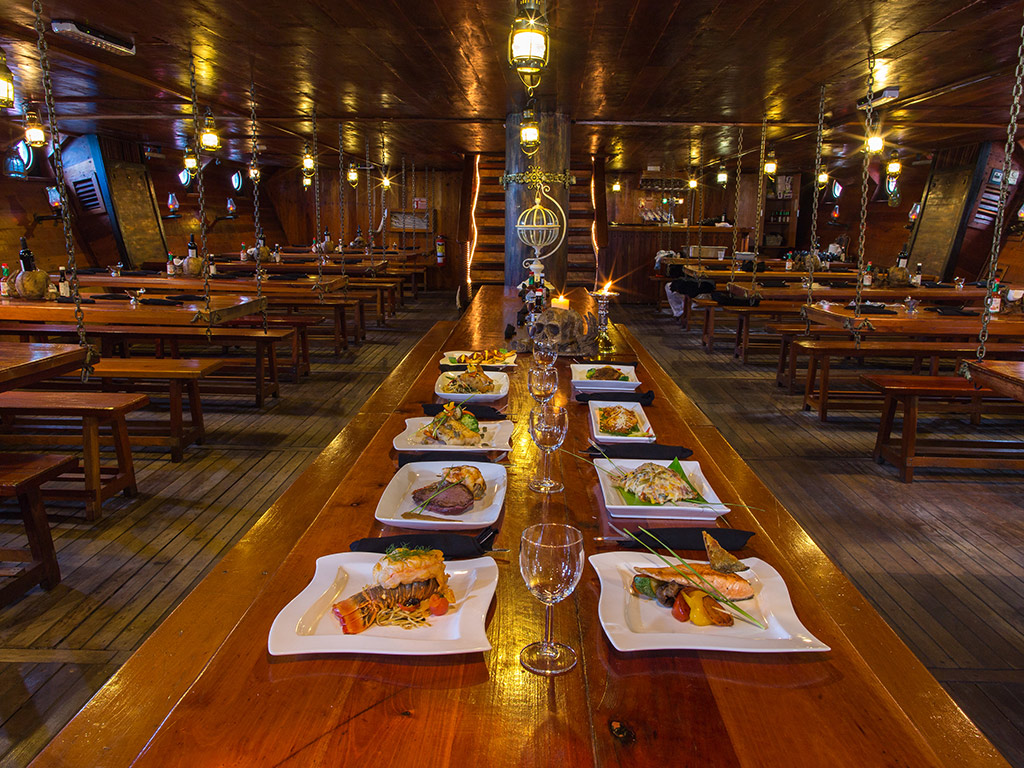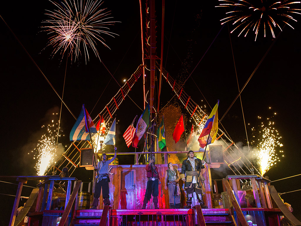 You feel part of this pirate show, sailing on board of an amazing Galleon, where you will be able to enjoy a delicious dinner with a variety of garnishes (cold and hot). Of course we will not forget of the little kings of your home with a special menu for them!