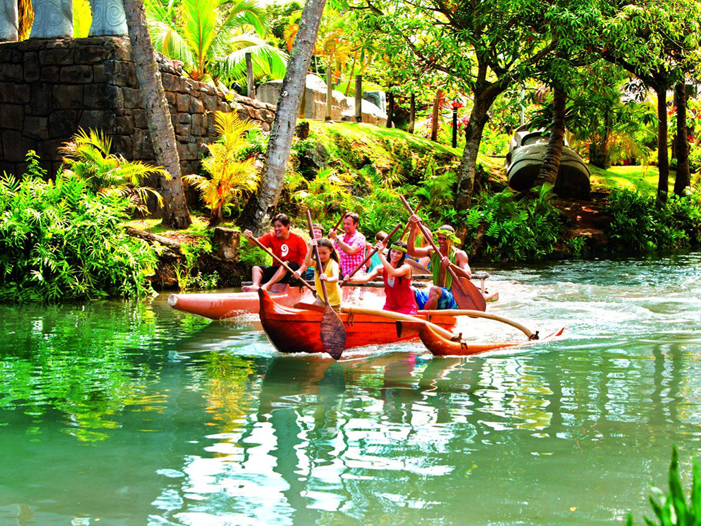 As you walk around each of the traditional villages not only can witness each of the Pacific cultures showing you the arts of dancing with fire, jewellery making and using plants to make clothes, but you can also join in the activities and speak with the villagers! You also have time to enjoy a relaxing canoe ride through the lagoon, feast on a Luau dinner buffet and watch an exhilarating evening performance.