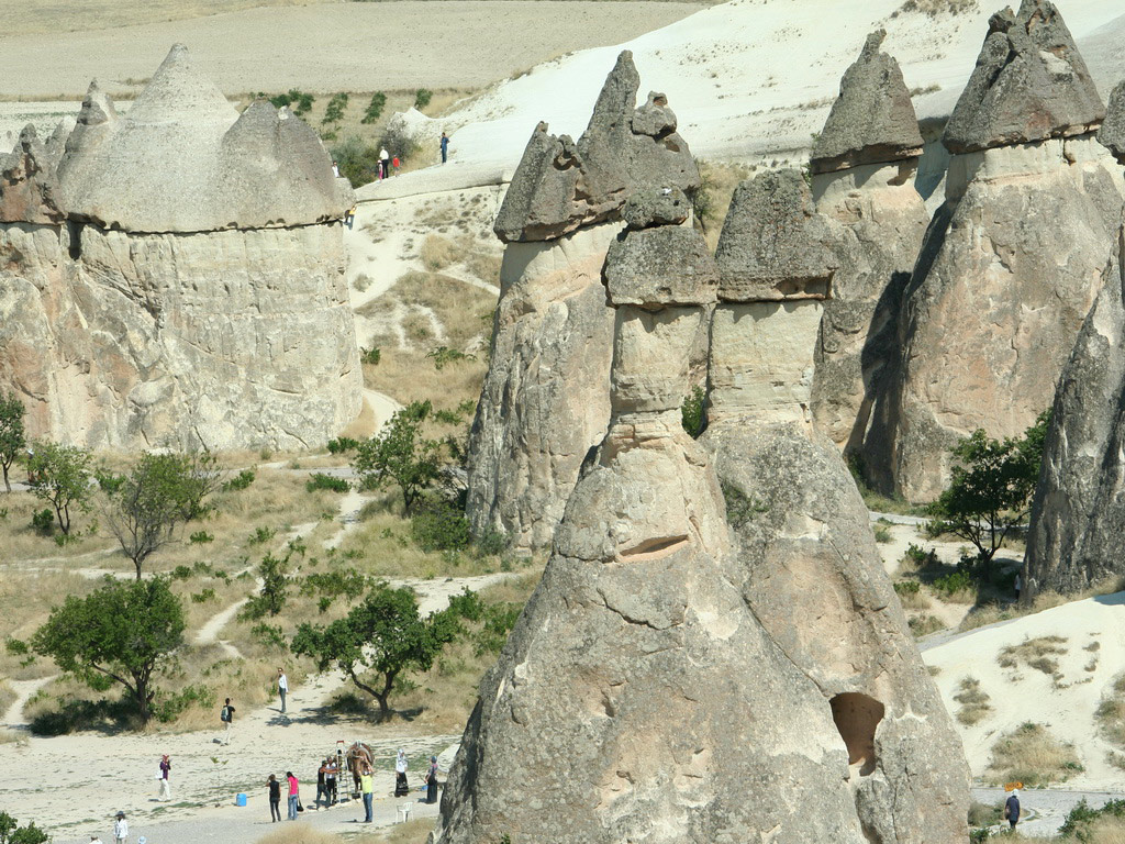 A full day tour of the spectacular region of Cappadocia, famed for its’ lunar landscape. The tour begins with a visit to Pigeon Valley. You can admire the multicoloured rock formations of the famous Pigeon Valley, and Uchisar’s picturesque fairy chimneys. A full day tour of the spectacular region of Cappadocia, famed for its’ lunar landscape. The tour begins with a visit to Pigeon Valley. You can admire the multicoloured rock formations of the famous Pigeon Valley, and Uchisar’s picturesque fairy chimneys.Göreme is located among the “fairy chimney” rock formations, a town in Cappadocia created from volcanic rocks; these chimney-shaped rocks are the result of erosion made by natural factors over the centuries. The area has also been an important religious place and underwent intensive emigration of the first Christians. You will see its magnificent Valley Scenery Views of Swords Valley, Love Valley, Red Valley and Zelve Mountain.
