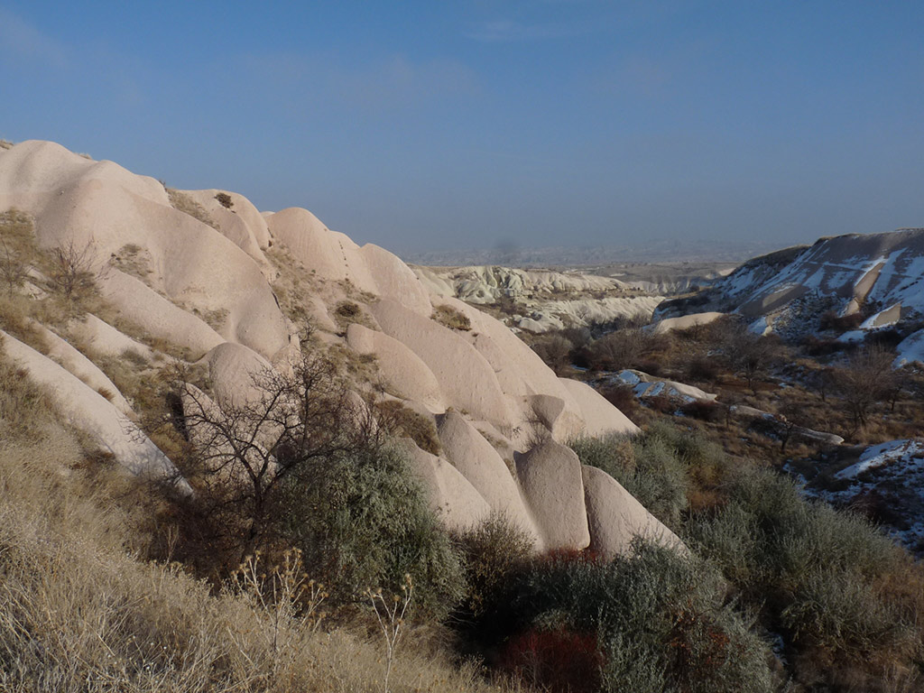 The next stop is in Paşabağ where you can see mushroom-like fairy-chimneys with multiple caps and stems situated in the middle of a vineyard. Then walk through Pasabaglar, used to be known as Valley of Monks.
