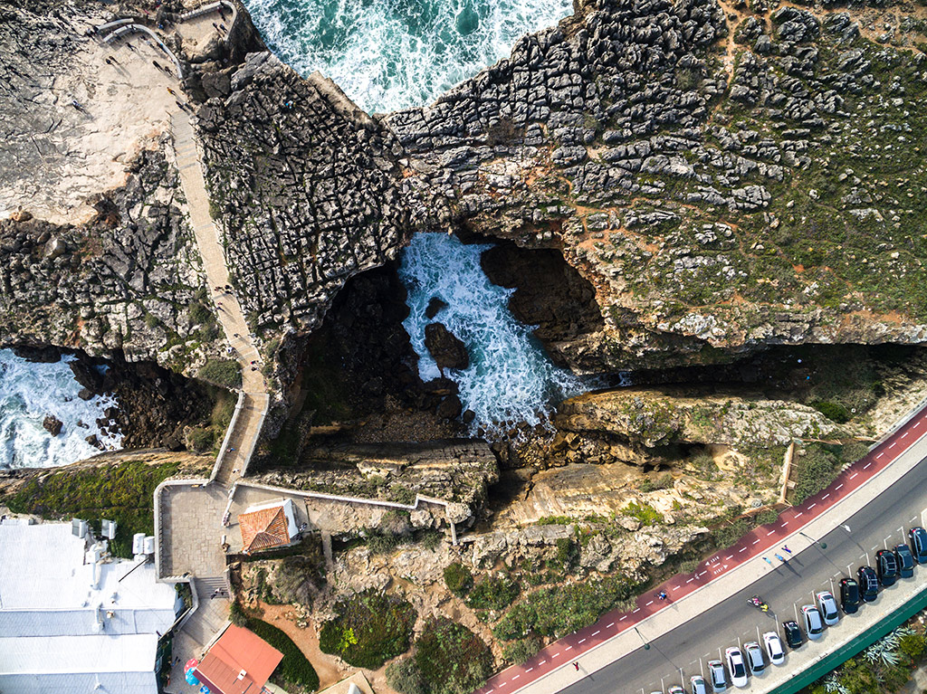 Continue on to the center of Sintra, where you can visit the castle or the National Palace. Stroll through the colorful streets of the village, contrasting with the bright green of the mountain. The morning will not end before a stop at the Quinta de Monserrate and Quinta da Regaleira, a fruit mansion imagined by a man in love with the arts.