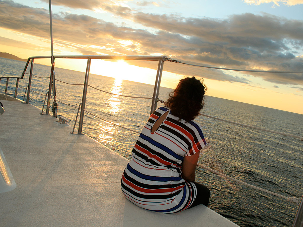 Silently glide along Costa Rica’s Gold Coast while passing some of Guanacaste’s exotic bays, white sand beaches and tropical jungles. Enjoy the landscape with a cold tropical drink prepared and served by our crew as you scan the seas for dolphins, sea turtles, flying fish or even a breaching whale. Stop in a tranquil bay, drop anchor and frolic in the blue Pacific. Snorkel in the bay or run down the deserted white sand beach while the ever helpful crew prepares a feast, fruit, chips, Pico de Gallo, guacamole and homemade chocolate chip cookies.
