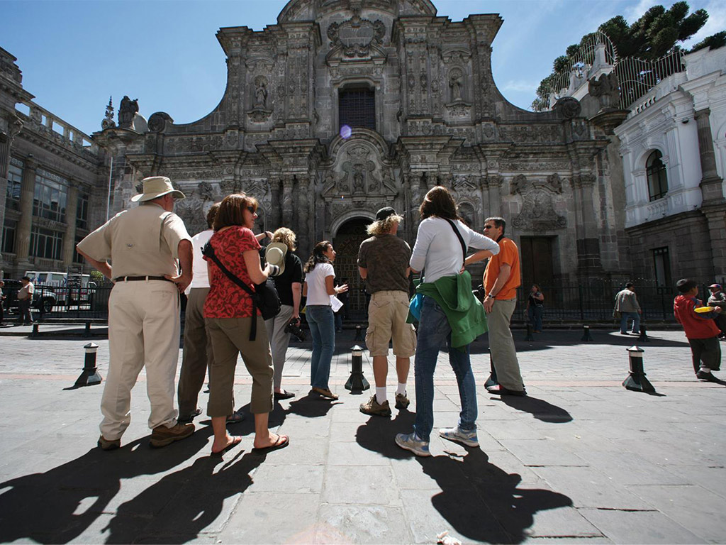 We begin in the northern part of the city with a tour along the most important commercial areas, where most of the hotels in Quito are located. Then we head to the historic center to visit the Basilica del Voto Nacional, where we will make a brief stop and explanation to later reach the Plaza de la Independencia, where through a walking route you will see the Cathedral, the Government Palace, the Archbishop's Palace and the La Compañia Church, recognized for its adornments and gold altars.
