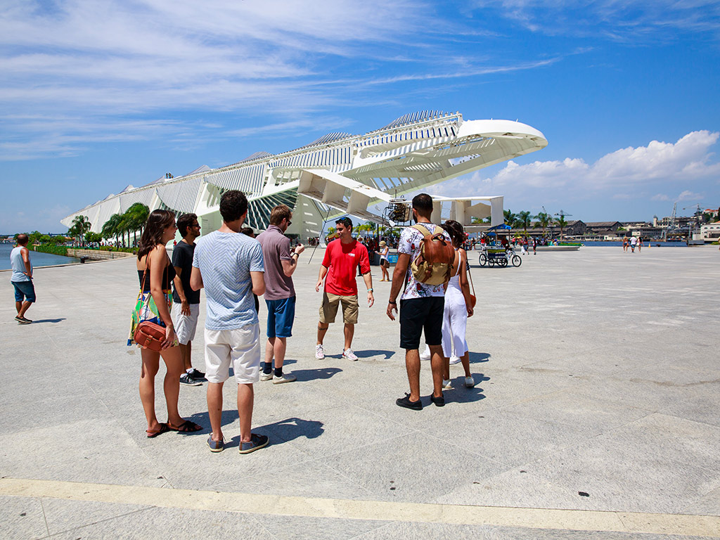 On this jam-packed Rio city tour, we’re mixing historical venues, modern designs, and stunning views from iconic sites to give you a full taste of Rio’s past, present, and future. We start our journey in the classic area of Copacabana, where we’ll head to the subway to reach the downtown area at Cinelandia Square. We’ll ride the newest transportation option in Rio, the VLT tram. The sustainable ride on the electric tram takes you across downtown all the way to the renovated harbour area, which has been developed into the modern Olympic Boulevard. The 2016 Olympic Games have left a great legacy on that side of town, and you won’t get a better first impression of modern-day Rio de Janeiro.