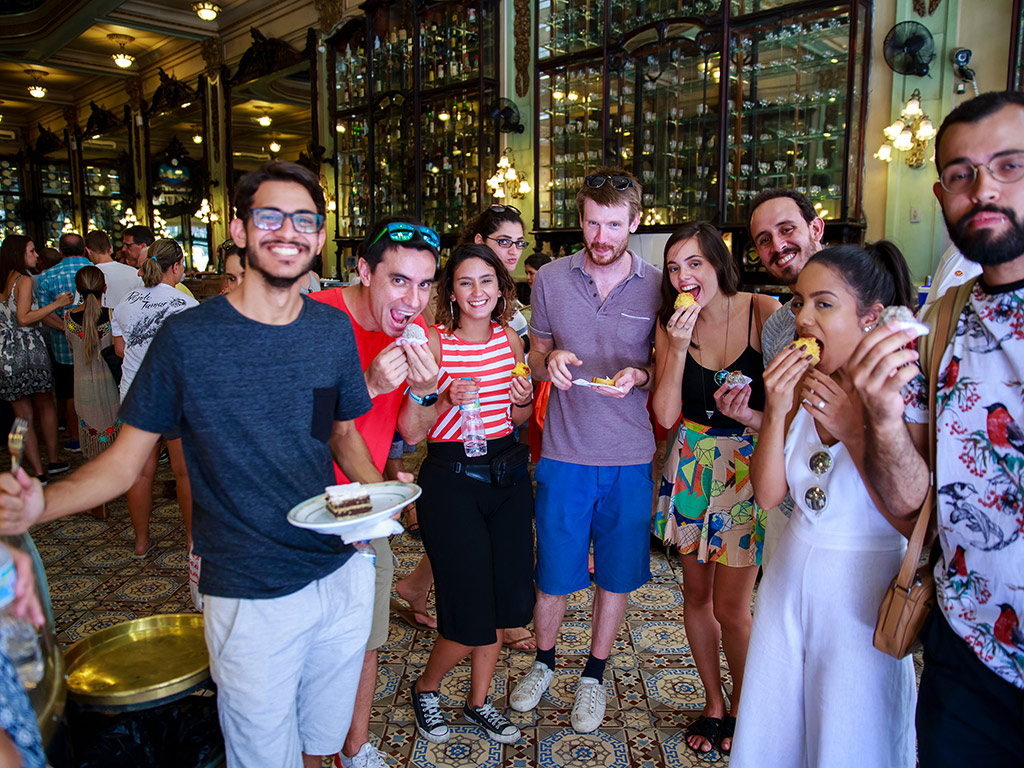 We’ll get off the tram right by the impressive and colourful graffiti mural designed by Eduardo Kobra. His work features the indigenous people of five continents and covers over 2,600 square metres of the building. From there, we’ll head from the boulevard down to the Museum of Tomorrow, another impressive work that’s great for snapping a few photos with Guanabara Bay in the background. We’ll then connect from this renovated area to the old district of the city via a new pathway along the bay. Moving along the old streets of Rio de Janeiro’s downtown, we’ll reach the first bakery of Rio. This traditional spot dates back to 1894 and has kept all of its original enchantment.