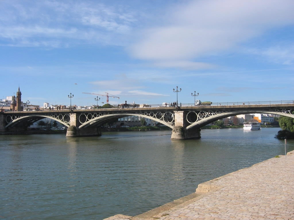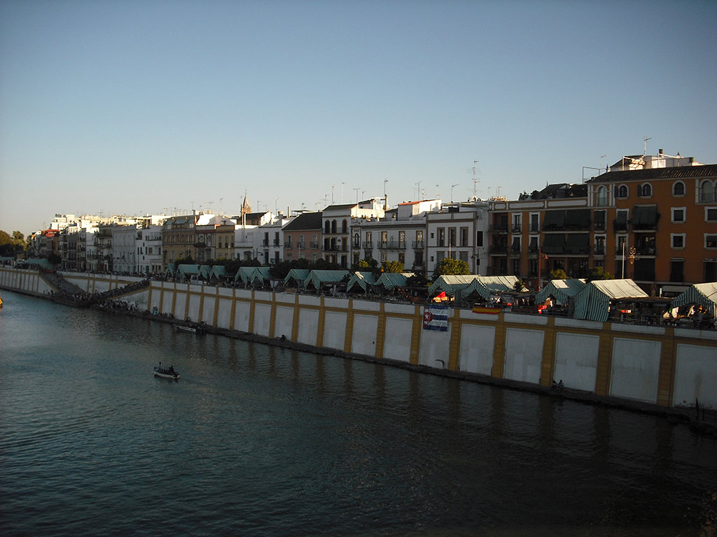 Then we'll go for a stroll along with Calle Betis, a popular promenade running along the waterfront with stunning panoramic views across to Seville, packed with bars, restaurants and nightclubs. We'll cross back into Seville by the Puente de Triana built in the mid-nineteenth century. Don't miss the small Moorish Revival Chapel on the West Bank of the Guadalquivir.