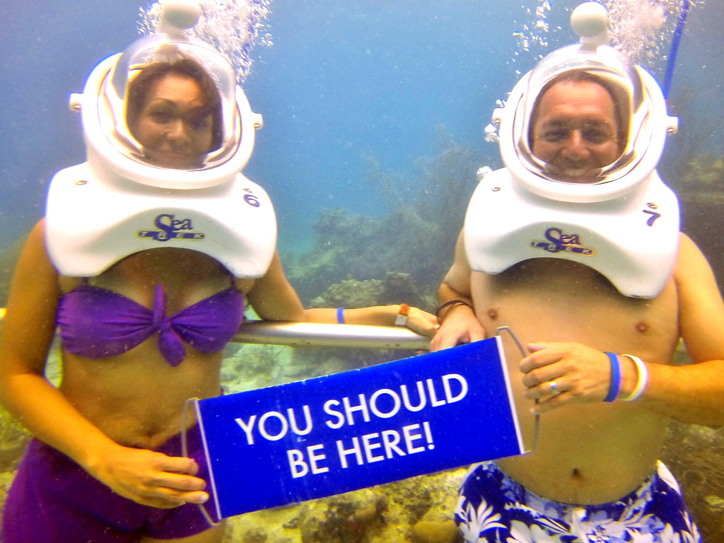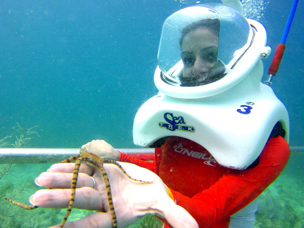Following an orientation, a guide will lead you along an underwater trail near Coral World’s Undersea Observatory. The helmet provides the air, weight and stability to walk upright under the water. Your head and hair stay completely dry a If you can walk and breathe - you can Sea Trek. Experience the thrill of exploring the ocean and all its wonders, without giving up precious vacation time for specialized training. Sea Trek is the world's premier underwater helmet diving experience. Imagine walking in zero gravity while surrounded by incredible aquatic life - that's Sea Trek.