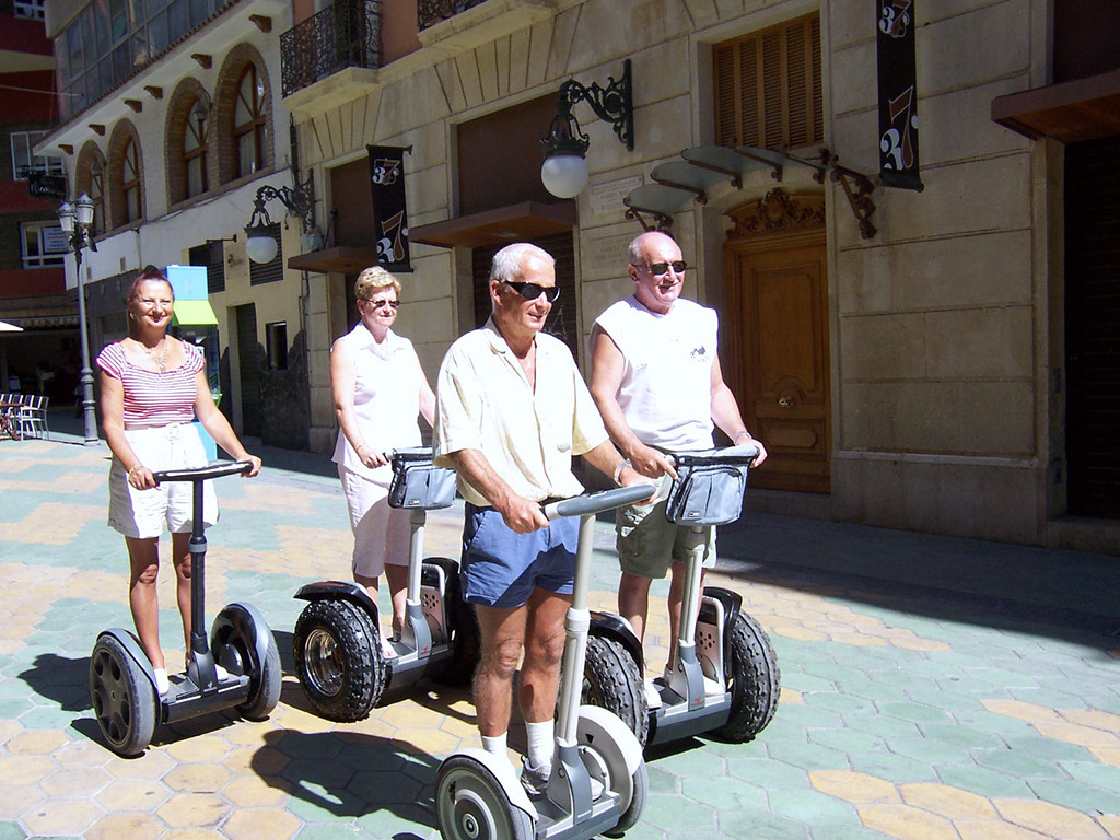 Nothing could be simpler. Once you've stepped up onto the platform, you'll realise straight away how the Segway does your balancing for you. Just lean a little forward and will see how the vehicle moves in response. It all feels natural, safe and instinctive. Explore some of the less well known parts of Benidorm as well as all the main attractions in the company of an experienced guide. The perfect way to explore this beautiful resort in an original and fun way with no sweat and no hassle.