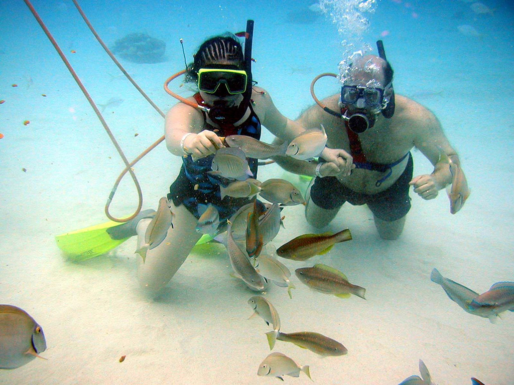 Our fabulous SNUBA Adventure Tour at Pigeon Island begins from a gently sloping sandy beach. The waters surrounding Pigeon Island offer a variety of tropical fish and marine life. We also have a variety of seasonal visitors including Turtles, schools of sardines and more…every dive is a new adventure! After a brief (15 minute) pre-dive orientation, that includes many useful snorkeling skills you will begin a ver comfortable and calm guided tour that will take you to a maximum depth of 20 feet. Our fabulous SNUBA Adventure Tour at Pigeon Island begins from a gently sloping sandy beach. The waters surrounding Pigeon Island offer a variety of tropical fish and marine life. We also have a variety of seasonal visitors including Turtles, schools of sardines and more…every dive is a new adventure! After a brief (15 minute) pre-dive orientation, that includes many useful snorkeling skills you will begin a ver comfortable and calm guided tour that will take you to a maximum depth of 20 feet.Our fabulous SNUBA Adventure Tour at Pigeon Island begins from a gently sloping sandy beach. The waters surrounding Pigeon Island offer a variety of tropical fish and marine life. We also have a variety of seasonal visitors including Turtles, schools of sardines and more…every dive is a new adventure! After a brief (15 minute) pre-dive orientation, that includes many useful snorkeling skills you will begin a ver comfortable and calm guided tour that will take you to a maximum depth of 20 feet. Snuba is diving at your level of comfort. If you want to cruise on the surface or descend to the depth of your choice, it is always up to you. There is no need to surface for air or to tussle with bulky equipment, just gear up and dive in! SNUBA is simply the underwater experience, done right! A tranquil combination of well-being and pleasure, discovering our beautiful marine life, one dip at a time!