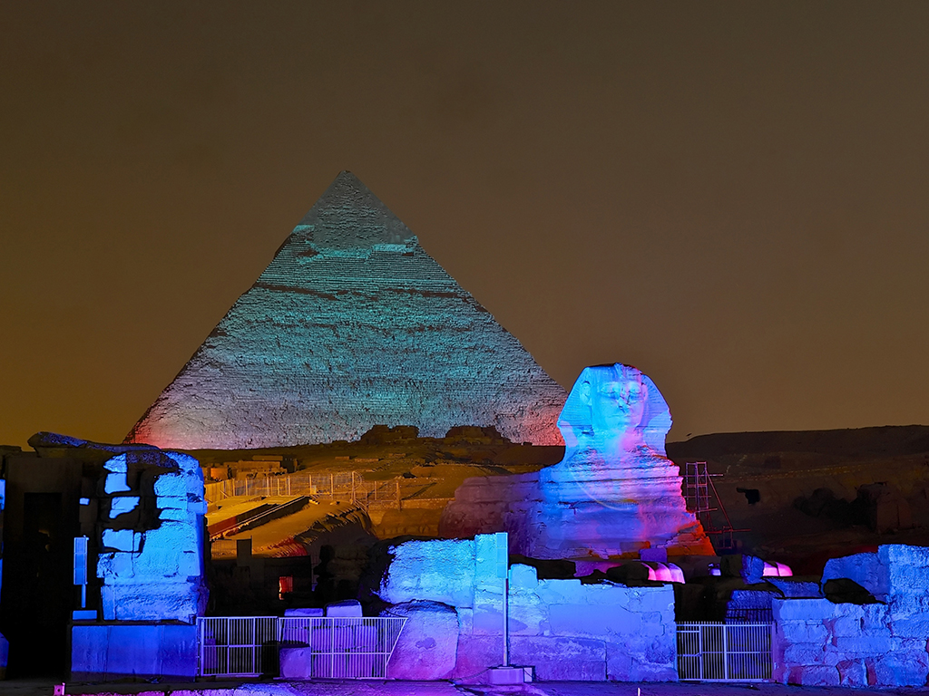 The Sound and Light Show at the Great Pyramids takes place on the Giza plateau. The one-hour show begins with the illumination of the Sphinx, who narrates the history of the pyramids and their builders. First four rows of seats are premium, one has to pay extra to get a seat there. In winter, don’t forget to bring a jacket because it gets cold there, otherwise you can rent a blanket to cover your legs. Redeem informationVoucher type: PrintedPrinted Voucher. Print and bring the voucher to enjoy the activity. LocationStart point: Hotel pickupEnd point: Same as the starting pointScheduleOpening dates18:00 - 20:00Duration: 2 HoursGuide optionsGuide type: Guide