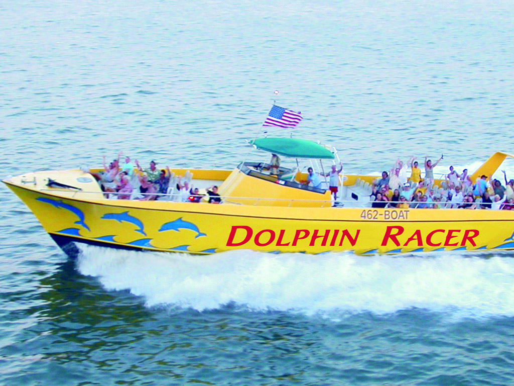 Take an exhilarating high-speed ride on the Intracoastal Waterway and the Gulf of Mexico with a breathtaking chase with nature, and watch as acrobatic bottlenose dolphins surf and dive alongside the Dolphin Racer. It’s sure to be an adventure you’ll remember for a lifetime. Don’t forget your camera! Take an exhilarating high-speed ride on the Intracoastal Waterway and the Gulf of Mexico with a breathtaking chase with nature, and watch as acrobatic bottlenose dolphins surf and dive alongside the Dolphin Racer. It’s sure to be an adventure you’ll remember for a lifetime. Don’t forget your camera!Take an exhilarating high-speed ride on the Intracoastal Waterway and the Gulf of Mexico with a breathtaking chase with nature, and watch as acrobatic bottlenose dolphins surf and dive alongside the Dolphin Racer. It’s sure to be an adventure you’ll remember for a lifetime. Don’t forget your camera!
