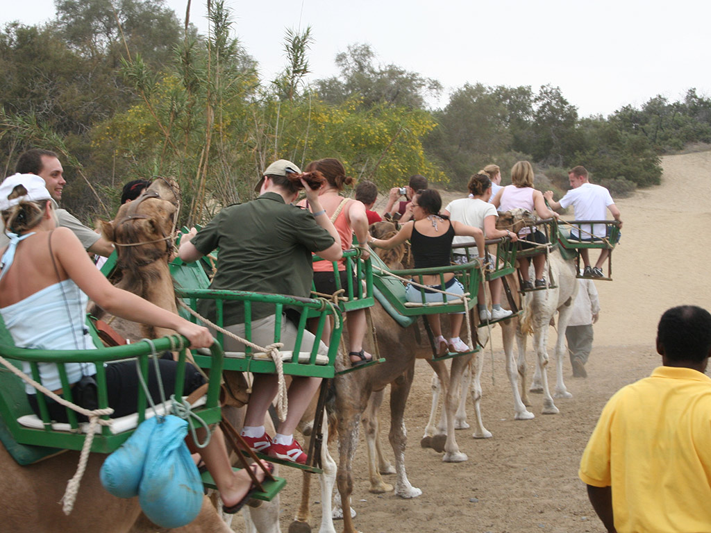 Then it's time to go off road again – we'll speed down dirt tracks raising clouds of dust on the way. You'll see the local cave dwellings, plantations of tropical fruit and more otherworldly rock formations. After a drive through a fragrant pine forest we'll stop at the remote settlement of Tunte for lunch in a traditional restaurant. We'll feast on barbecued chicken, a selection of salads and tiny local potatoes with spicy mojo salsa. Sangria and soft drinks are also included in the price. Then the brave hearted can go on a camel ride in Fataga, Berber-style, for around 30 minutes.