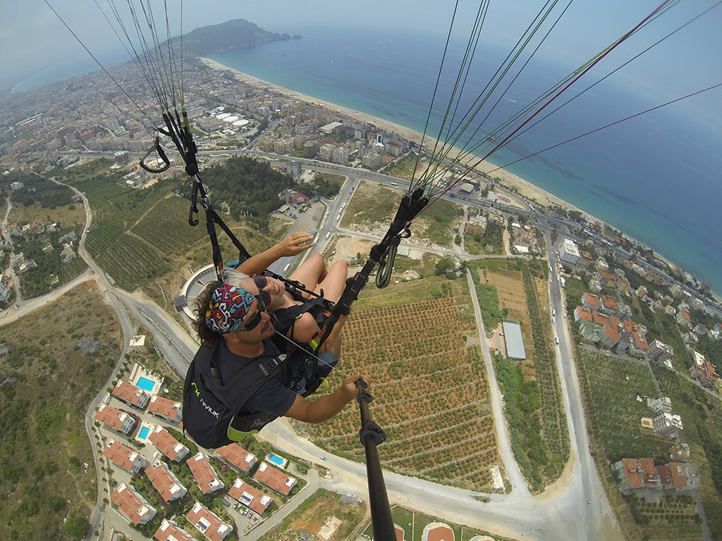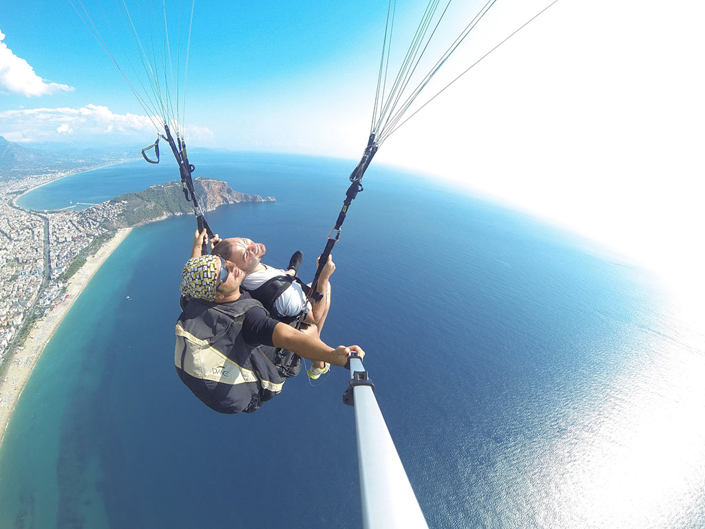 Paragliding experience is available every day, in the morning or afternoon. The driver will come to pick you up at the hotel and you will drive to Cleopatra’s beach in Alanya. It will take just 20 minutes to get from there up the hill to the paragliding start point - 800m above sea level. On arrival you will have a short briefing and then be ready to have an unforgettable paragliding experience. A professional tandem pilot will control the speed of the flight and you can enjoy the stunning views over Alanya, the turquoise sea and beautiful mountains.