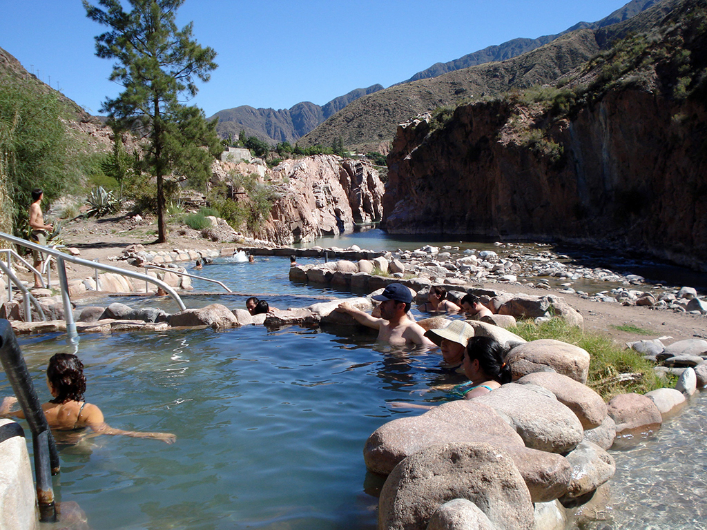 Thermal hydrotherapy circuit, which includes a Sauna in a natural thermal grotto (unique in Argentina), Finnish and Scottish shower, thermal relaxation pools, mineral mud therapy, with external pools in front of river Mendoza. Creole buffet lunch that includes full vegetarian buffet, salad bar and barbacue, with pork and chicken, plus grilled vegetables.