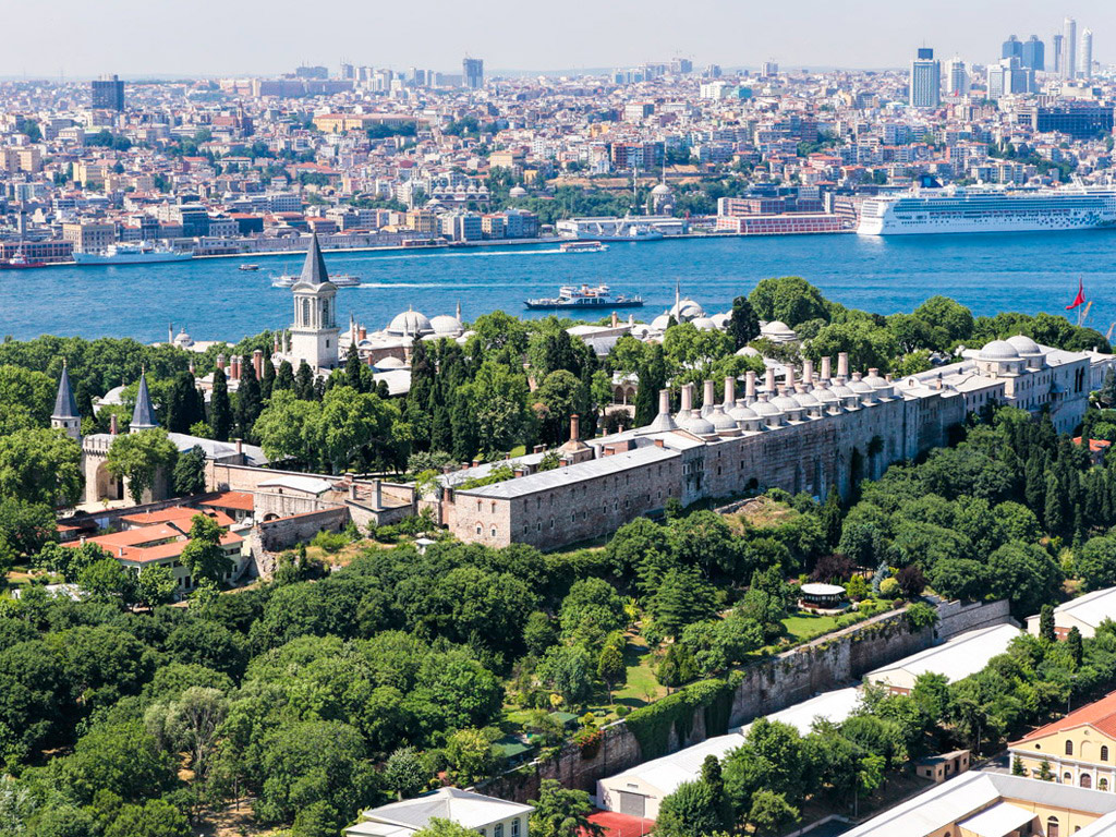 Topkapi Palace had been the Imperial residence of the Ottoman Sultans from the 15th to the 19th century. Its design, initially devised by Sultan Mehmed himself and then enhanced by the architect Sinan, hides clues of the rituals of the structure of Ottoman hierarchy and the running of state affairs. Home to the imperial treasury and the cabinet, as well as being the site of the barracks for the Janissaries, the elite of the army, every corner of the palace tells about the splendour of the Ottomans. Apart from the priceless treasury, a distinguished collection of Chinese porcelains, holy relics, sultan’s costumes and imperial weaponry are exhibited in different sections of the palace.