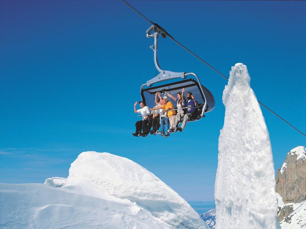 At the top of Mount Titlis, a high alpine panorama awaits you. Enjoy magnificent views of the Alps from the restaurants or the sun terrace. Visit the shimmering 350-metre-long Ice Grotto or take a ride with the IceFlyer, which brings you close to the crevasses.