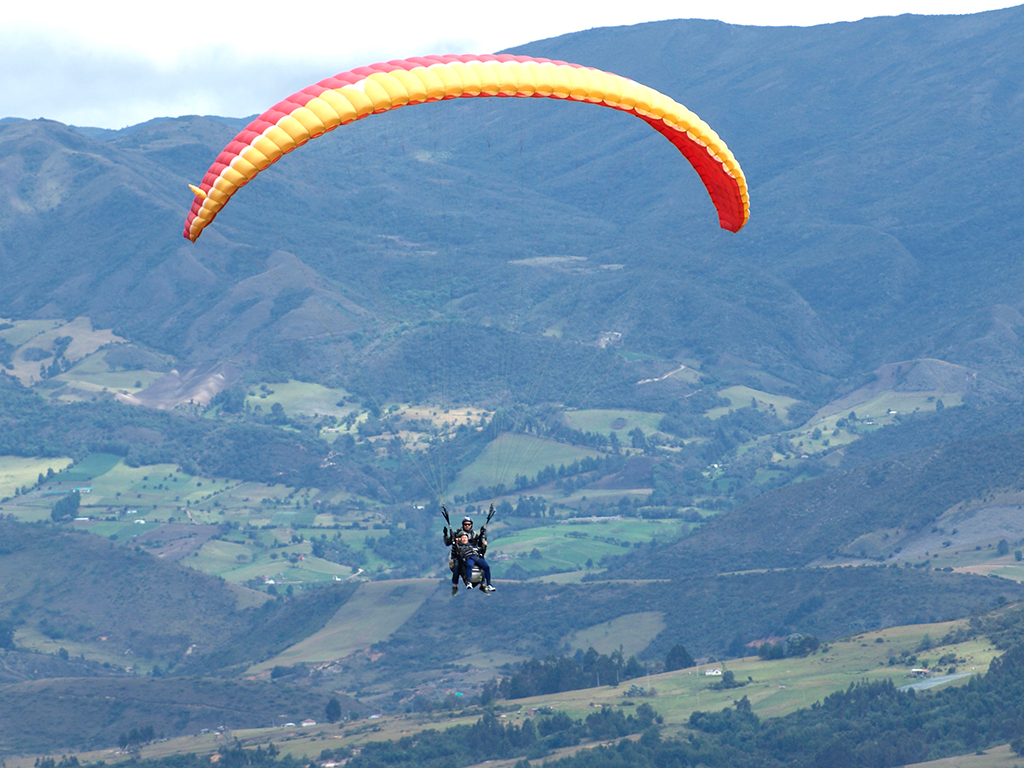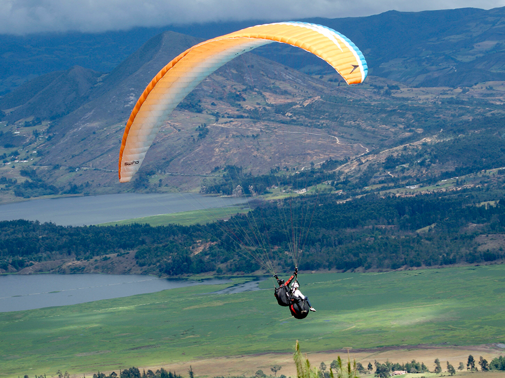 Soar the skies like an Andean condor above the rich colourful landscape of the Savannah of Bogotá and the majestic Tominé dam.