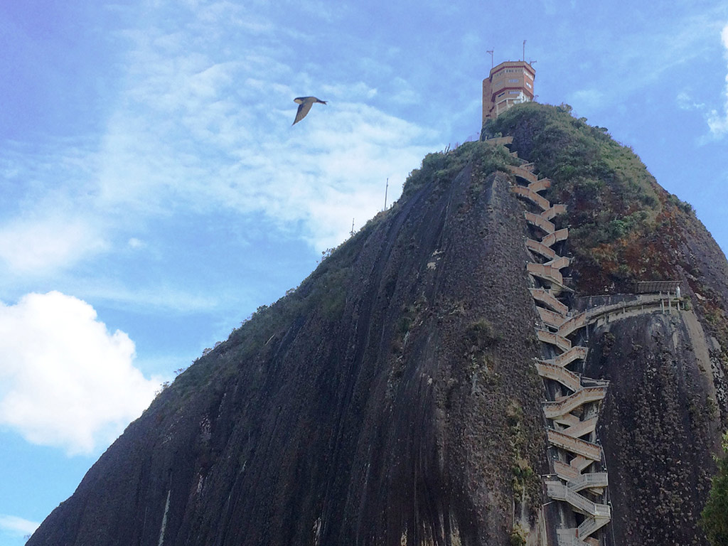 Tour goes on to El Peñol, a village that was relocated during the past century in order to create this spectacular human made lake called Guatapé. This quick stop will show you a replica of the old Peñol village before its relocation. The massive lake becomes more visible as you get closer to El Peñol rock, a gigantic volcanic eruption considered one of the world´s top ten wildest stairways, and the views are quite worth it!
