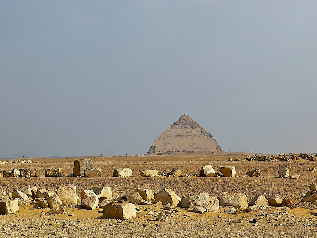 The First real pyramid in Egypt, the Red Pyramid and its first try the Bent Pyramid in Dahshur, Dahshur is a famous royal necropolis in Egypt holds many famous Pyramids built by Snefru (Cheops' Father).