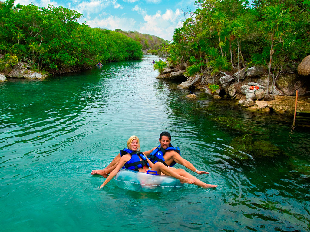 After that informative history session, journey to the wonders of Xel-Há. This natural aquarium is renowned around the world for its countless groups of brightly coloured tropical fish that ever scuttle beneath the surface. It also contains some dramatic limestone formations that make a wondrous backdrop. Spend your time as you please upon this little paradise, be it in the water or on the white sand.