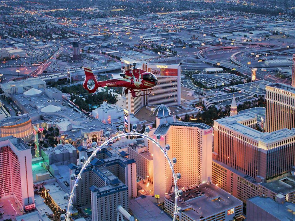 Soar high over the wild and eclectic Las Vegas Strip on this amazing helicopter tour above one of the most famous tourist destinations of the world. From the vertiginous vantage point of a chopper, take in an eyeful of the whole world in a single glimpse thanks to the Strip’s imitations of some of the Earth’s most renowned landmarks. Soar high over the wild and eclectic Las Vegas Strip on this amazing helicopter tour above one of the most famous tourist destinations of the world. From the vertiginous vantage point of a chopper, take in an eyeful of the whole world in a single glimpse thanks to the Strip’s imitations of some of the Earth’s most renowned landmarks.As the rotors begin to whirr around at high speed and the heavy machine lifts off the ground, feel the excitement build up in your stomach as the ground starts drifting further and further below you. All of a sudden, feel like you are miles away – many more miles than you are away from the floor. What’s more, feel like you are in a completely different continent: see from this spectacular bird’s eye-view the New York skyline or the infamous Eiffel Tower of Paris. And, of course, the part of town that takes you to a futuristic version of Giza: the world-famous Luxor’s pale sphinx and crystal pyramid.