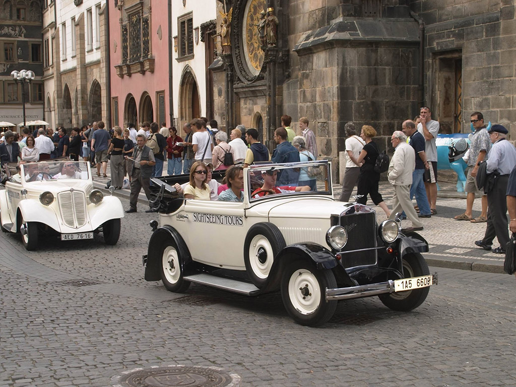 Cruise around one of Europe’s best-preserved capital cities in a suitably well-preserved vintage motor car. Redeem informationVoucher type: PrintedPrinted Voucher. Print and bring the voucher to enjoy the activity.LocationStarting point: 38 Narodni St - Prague - CZMeeting point is Gray Line stand at Narodni Street 38 or pick-up from downtown Prague hotels including guide. Please call up 48 hours beforehand to confirm the pick up time and place.End point: Same as starting pointScheduleOpening dates18:00 - 18:4509:00 - 09:4516:00 - 16:4511:00 - 11:4510:00 - 10:4517:00 - 17:4515:00 - 15:4512:00 - 12:4514:00 - 14:4513:00 - 13:45Duration: 45 MinutesGuiding optionsGuiding type: GuideGroup type: SharedRequirementsFor groups of five-eight passengers, a vintage bus will be used instead of vintage car.