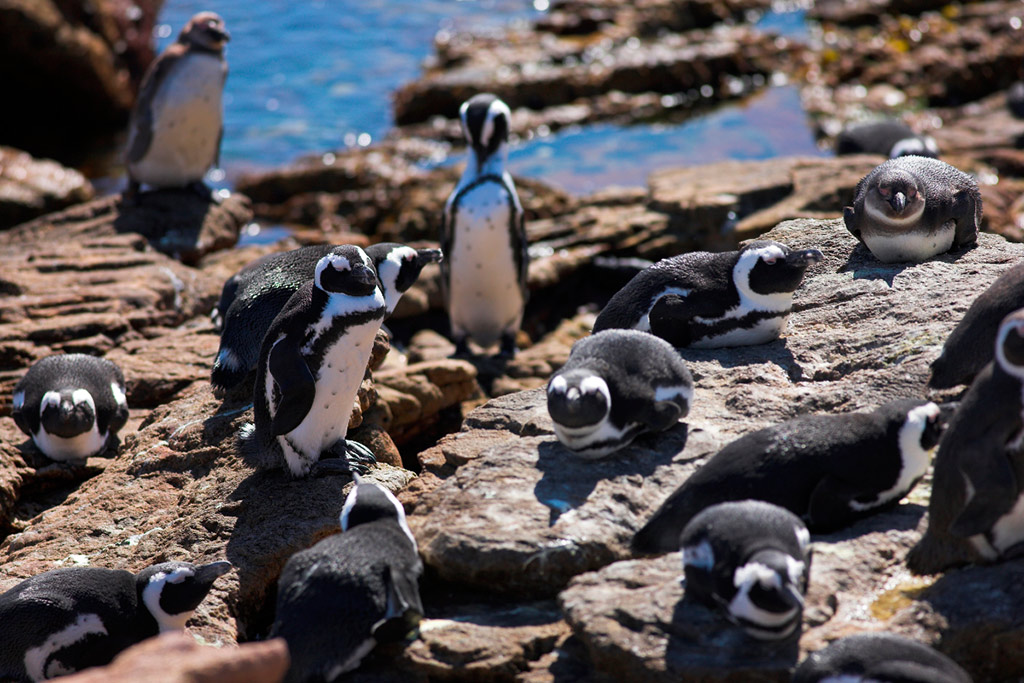 Watch the endangered African Penguin colony at Stony Point near the seaside and fishing village of Betty’s Bay, sheltered by the Kogelberg Mountains on one side and looking out to the ocean on the other. Stony Point holds one of only two shore-based African Penguin breeding colonies in South Africa, and is home to one of the largest successful breeding colonies of African Penguin in the world. Watch these enthralling birds at play via a well-constructed wooden walkway, and enjoy the large colony of Cape Cormorants that also live in the area. Whale spotting during calving season (July-November) is another highlight and dolphins may be seen year-round.