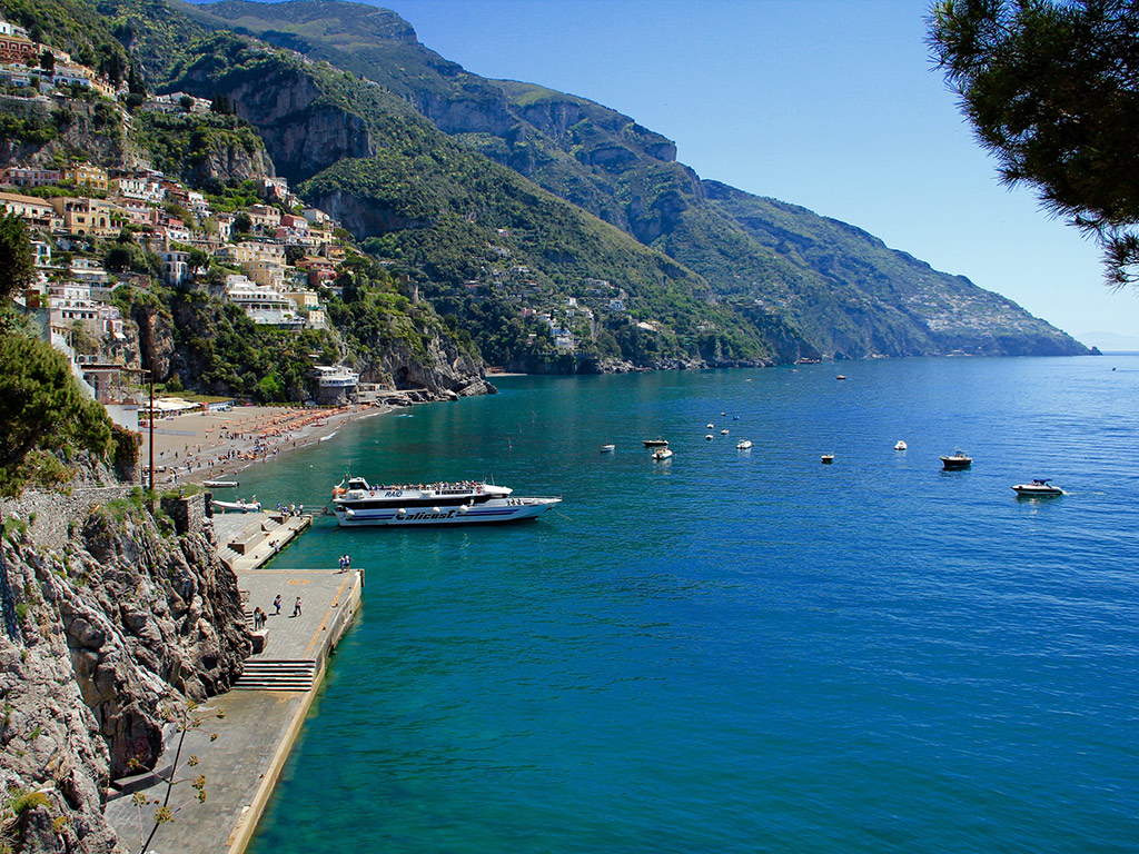 The first stop is the most picturesque town on the entire coast, Positano, whose houses seem to tumble down into the sea amid narrow alleyways, chic boutiques, typical restaurants, and ‘Dolce vita’ cafés. Despite its present glamor, Positano was once a poor fishing village that was almost abandoned until it was ‘rediscovered’ by international jet-setters, filmmakers, and writers, making it a haven for the cultural elite. Its charm will seep into your pores as you shop for local ‘limoncello’ or visit the church of Santa Maria Assunta.