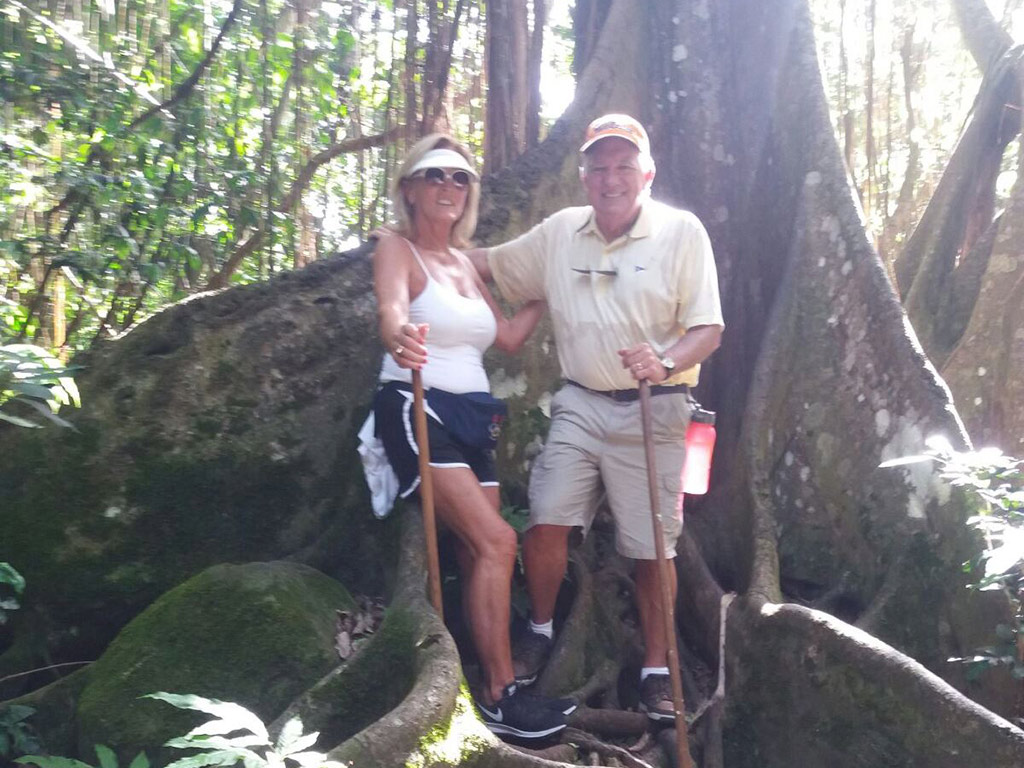 Walk along a pleasant trail free from the sun and mosquitoes, shadowed by the branches of the trees. Enjoy the flora and fauna and the birds, a virtual paradise for your eyes. Swing on a vine through the forest. Walk next to a small waterfall and listen to the sounds of nature. Step away from the hustle and bustle of your busy life and escape to a virtual Garden of Eden with us. The sounds of nature have a calming effect on the soul. It will rejuvenate and refresh you as you journey on your choice of either a one (1) mile or 2.5 miles hike through the rainforest trails, guided by your informative Five Star Tour Guide. Finish your hike with cool refreshments.