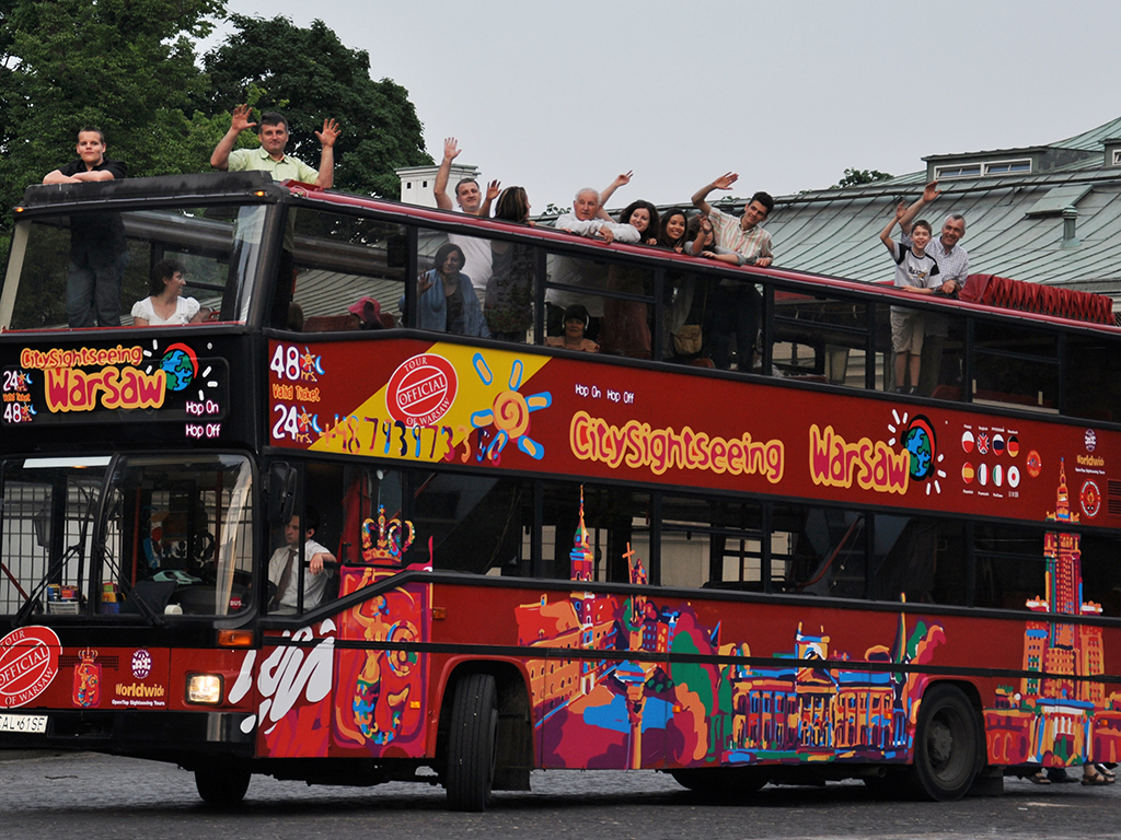 Explore Warsaw's iconic landmarks and attractions on a tour on an open-top double-decker sightseeing bus. Hop on and off at your leisure at any of the many stops and discover a unique city in Europe that perfectly combines tradition and history with modernity today. Explore Warsaw's iconic landmarks and attractions on a tour on an open-top double-decker sightseeing bus. Hop on and off at your leisure at any of the many stops and discover a unique city in Europe that perfectly combines tradition and history with modernity today.Highlights- Bus stops close to the city's main attractions - Admire panoramic views of the city - Create your own itinerary and explore the city as you wish City Sightseeing Warsaw is the best way to get around the city during the stay. The open-top Double-Decker buses allow to plan the stay effectively and the on-board commentary will enlighten about this battle-scarred city with its impressive cultural scene and an increasingly lively nightlife.