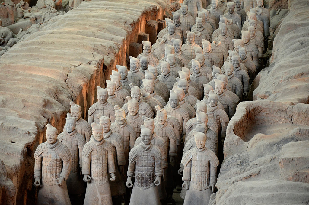 Later continue to discover the Mausoleum of the First Qin Emperor, also the first emperor of China. The construction of this tomb began when Qin Shi Huangdi ascended the throne at the age of 13. On completion of his many conquests, he ordered 720,000 conscript laborers to hurry up on building his royal tomb. It is believed that the tomb consists of an interior city and an exterior city, many large‐scale buildings housing precious treasures are said to be buried inside the tomb. After exploring this historical relic, enjoy lunch at local restaurant, and have a short visit at the Terracotta Replication Factory on the way back to downtown, where actually re‐made terracotta soldiers, you will have the chance to get more knowledge of how to make a terracotta soldier.