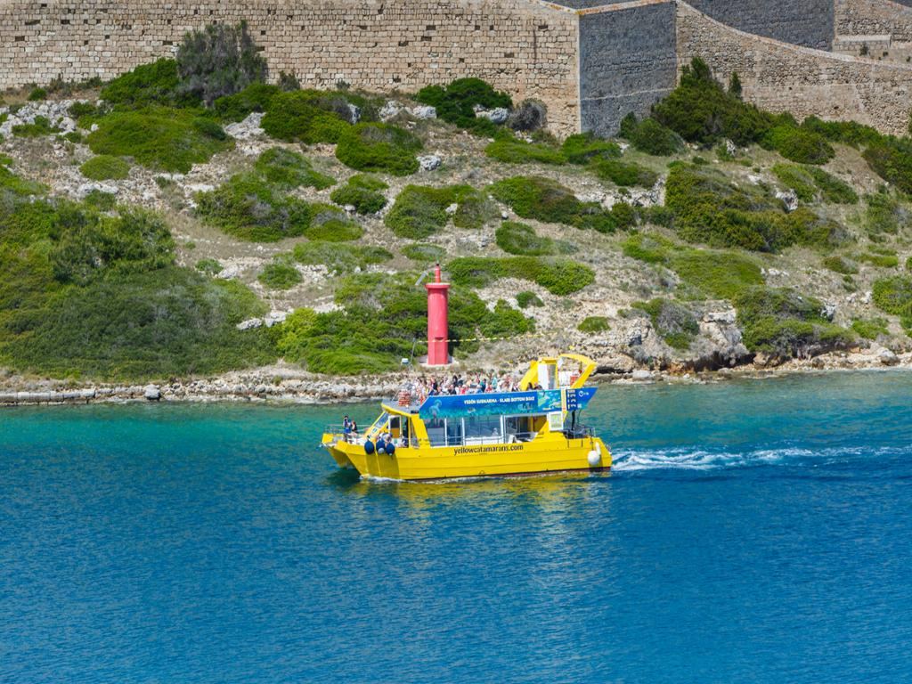 The complete boat-trip around the Port of Mahon with historical commentary and underwater views will firstly take you to the north shore (S'altra banda), passing the Spanish Naval Base, the Anglo-American cemetery, the "Isla Plana" and the "Isla del Lazareto" (a former quarantine hospital), then passing the "Canal de Alfonso XII towards the "Fortaleza de la Mola". Leaving the mouth of the port, one can enjoy underwater views of the clear waters of the "Clot de la Mola".
