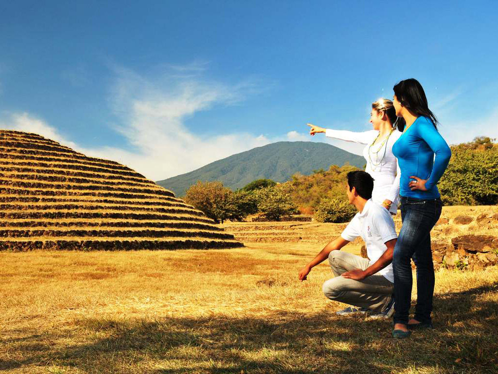 This tour will take us to an important pre-Columbian archaeological site near Teuchitlan in the valley of Tequila that was only discovered in the 1970s. Explore circular pyramids known as Huachimontones, as well as remains of mining operations, fields and ballcourts dating back to as early as 300BC. This five hour excursion includes hotel pick up and drop off, all transfers and the services of a bilingual guide. Please note that meals and drinks are not included. This tour will take us to an important pre-Columbian archaeological site near Teuchitlan in the valley of Tequila that was only discovered in the 1970s. Explore circular pyramids known as Huachimontones, as well as remains of mining operations, fields and ballcourts dating back to as early as 300BC. This five hour excursion includes hotel pick up and drop off, all transfers and the services of a bilingual guide. Please note that meals and drinks are not included.This tour will take us to an important pre-Columbian archaeological site near Teuchitlan in the valley of Tequila. The site was only discovered in the 1970s – before this it was believed that Western Mexico did not have any significant ceremonial sites or cities. Here you can explore circular pyramids known as Huachimontones, as well as remains of mining operations, fields and ballcourts dating back to as early as 300BC. The tour begins with a brief video about the pyramids and a visit to a small museum containing artefacts found in the area. Then we'll drive to the pyramids themselves. These massive circular structures are believed to have been built by a creative culture, part of the so-called Teuchitlan tradition, a complex society that existed from as early as 300 BCE until perhaps 900 CE. There are several pyramids to explore, some of which have a a post hole at the summit, most likely for volador ceremonies. The pyramids may also have supported small temples. Sunken circular plazas surround each pyramid and a series of smaller mounds surround the plazas. On top of the mounds are platforms that once supported wooden buildings made of wood and clay. The site has a total of 10 circular complexes, four rectangular plazas and two ballcourts.